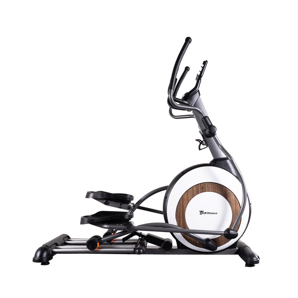 La elíptica Magnética Unifitness Pro K60 ofrece un volante de inercia de 8 kg y una amplia zancada de 49 cm, con 32 niveles de resistencia para un entrenamiento personalizado. Con monitoreo de frecuencia cardíaca, bluetooth y acceso a entrenamientos por aplicación, es ideal para usuarios hasta 150 kg. ¡Potencia y confort para entrenar al máximo!