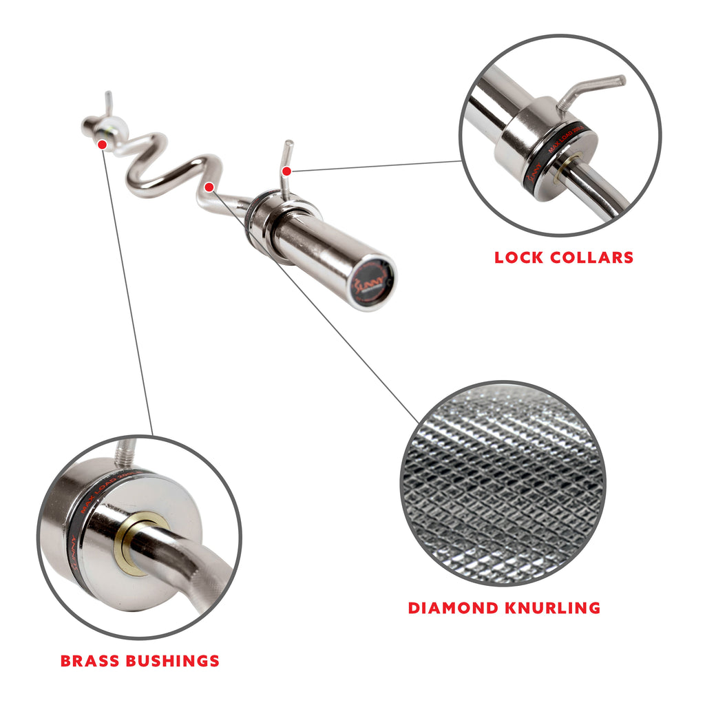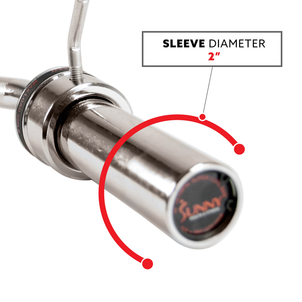 La Barra Z Olímpica de 48” (122 cm) de Sunny Health & Fitness cuenta con agarre antiderrapante y bujes rotables, ideal para llevar tu entrenamiento al siguiente nivel.